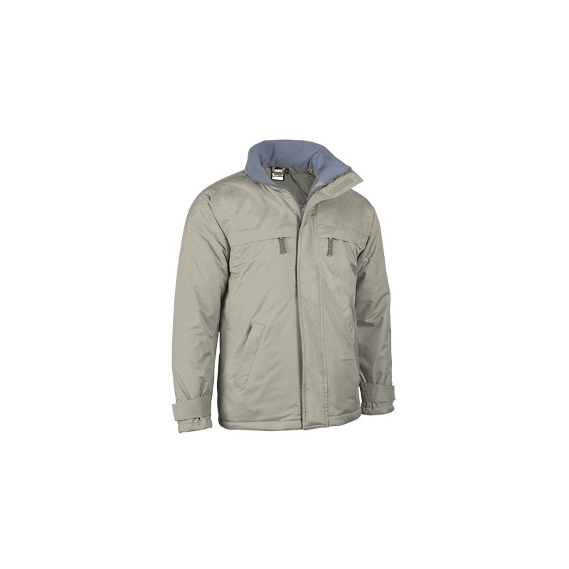 Chaquetón de abrigo, confeccionado en tejido técnico exterior rip-stop recubierto de PVC con tratamiento impermeable, relleno acolchado y forro liso interior. Incluye tejido polar en cuello y bolsillos. Cuello alto y cierre con cremallera frontal. Cordón regulador interior y puños con velcro. Capucha con cordón de ajuste oculta en cuello. Dos bolsillos bajos con cremallera y dos bolsillos en pecho con cremallera. Dos bolsillos interiores. Costuras termoselladas que impiden el paso del agua. Cremallera interior trasera para facilitar el marcaje